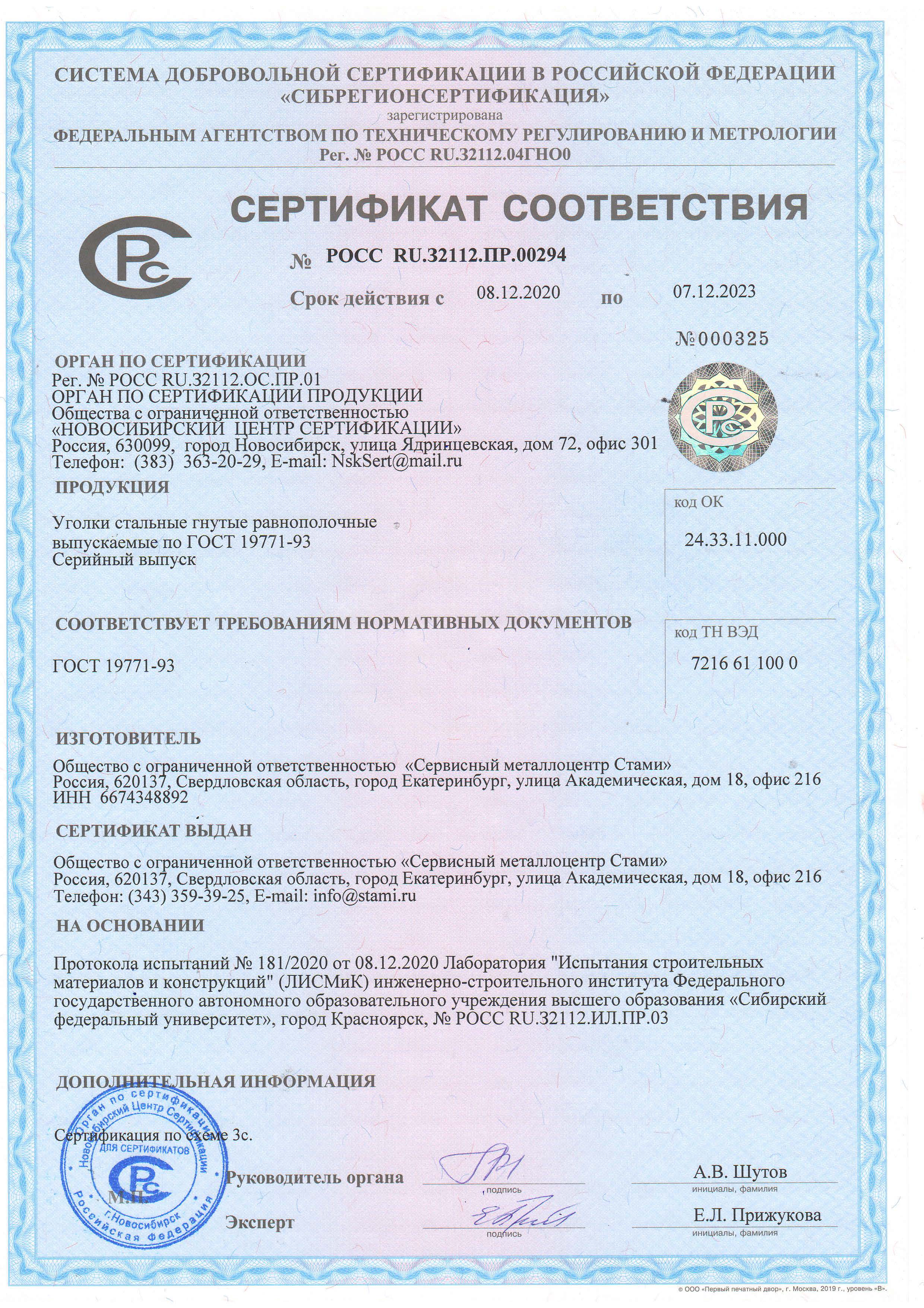 ООО «Сервисный металлоцентр «Стами» производит равнополочный (по ГОСТ 19771-93) и неравнополочный (по ГОСТ 19772-93) гнутый уголок (металлический профиль с Г-образной формой поперечного сечения) из стального штрипса на автоматической линии холодной прокатки способом холодного профилирования толщиной от 2 до 6 мм шириной полки от 25 мм до 160мм и длиной до 12 метров. Гнутый уголок изготавливается из углеродистой стали обыкновенного качества (ст3пс, ст3сп), низколегированной стали марки 09Г2С.